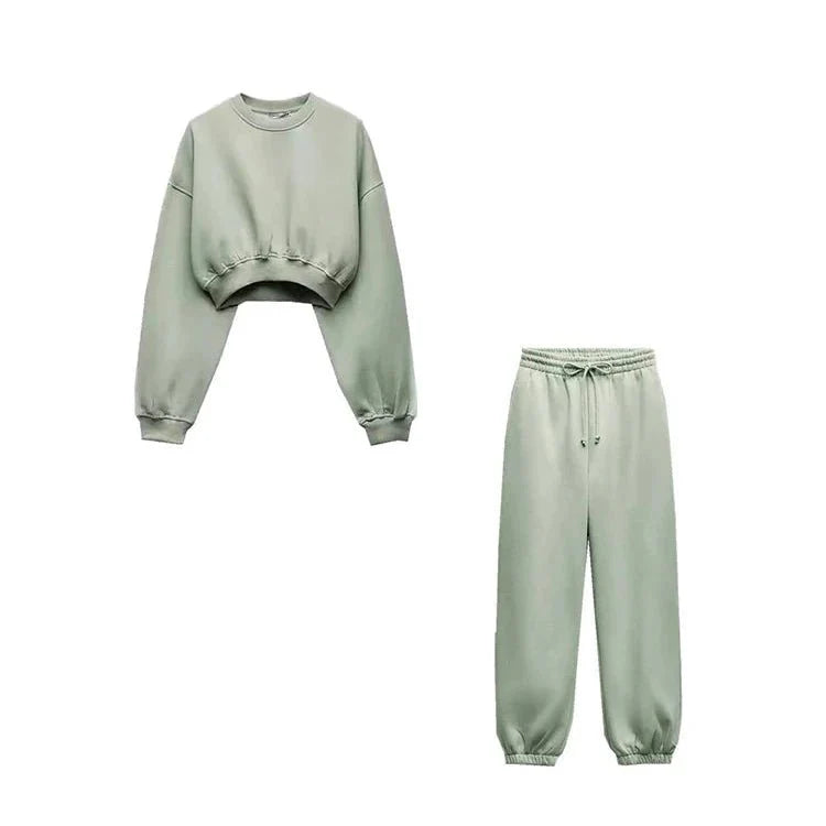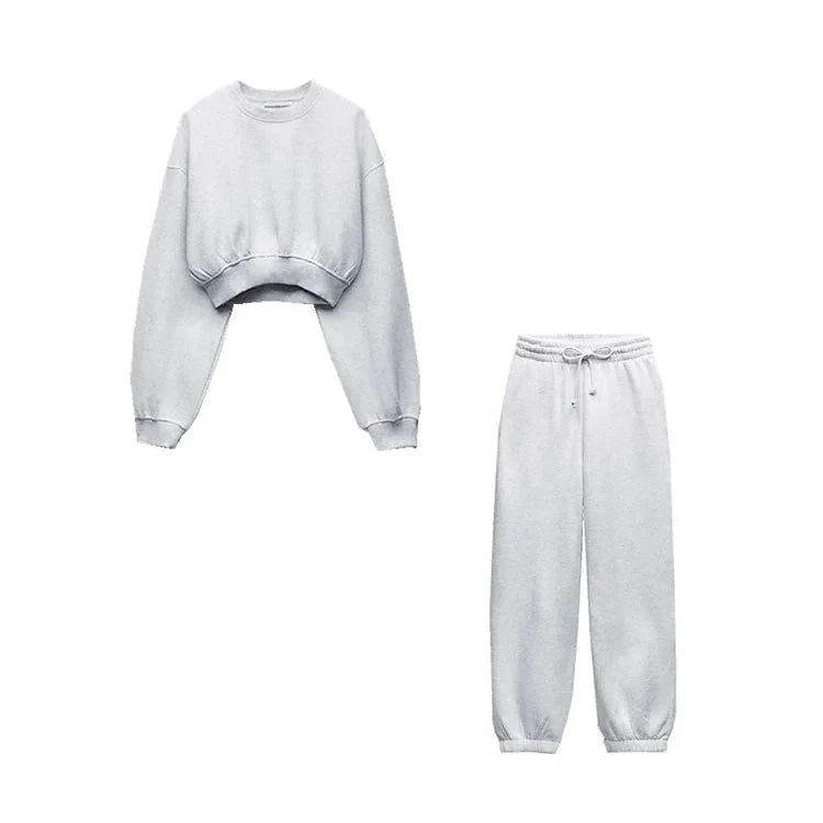Comfortabele set bestaande uit hoodie met lange mouwen a bijpassende broek met trekkoord. Gemaakt van zacht katoen voor maximaal comfort, ideaal voor casual uitstraling in de stad of thuis.